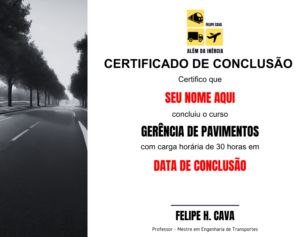Além disso, o ensino do Prof. Felipe Cava, que explica com total transparência e facilita a compreensão dos conteúdos, foi um grande diferencial. Por esses motivos, me senti motivado a me inscrever no mestrado em Infraestrutura de Transportes, no qual a disciplina de Gerência de Pavimentos é uma das primeiras que estou cursando.